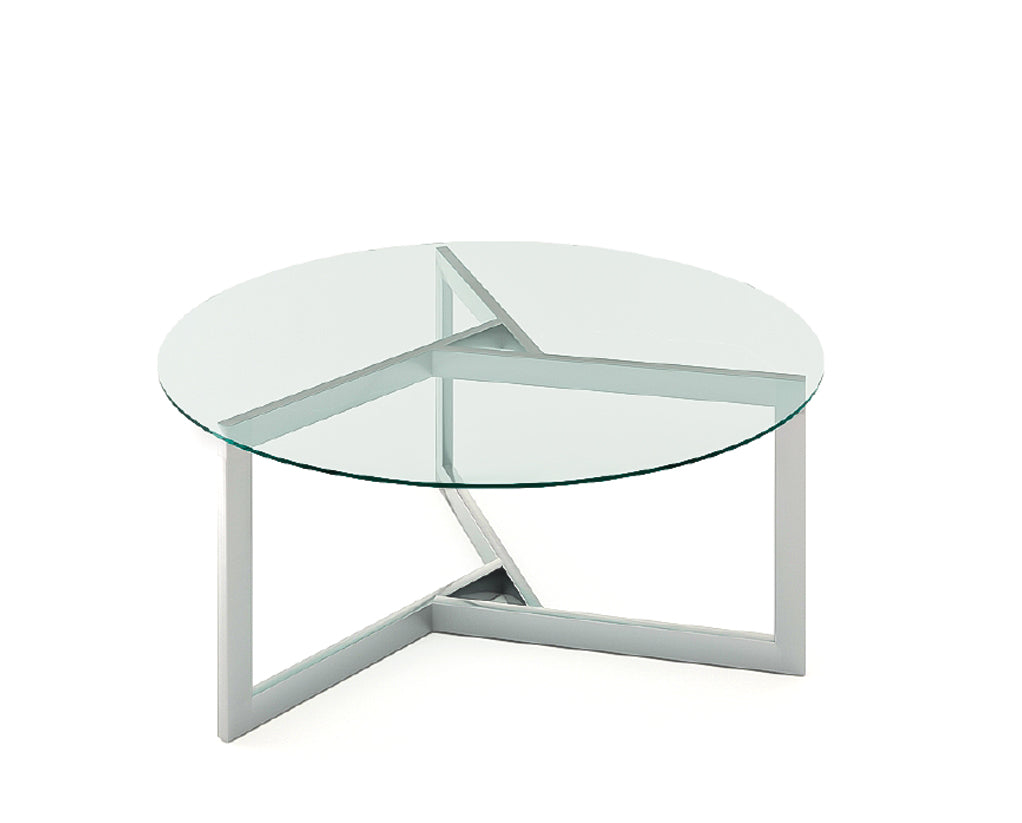 The LC round table is a sophisticated and contemporary coffee table that effortlessly blends elegance and functionality. Its circular glass top, paired with a sleek metal base featuring a unique polygon triangle design, creates a visually striking and modern aesthetic. This table is the perfect addition to any living space, adding a touch of artistic flair and contemporary style .
