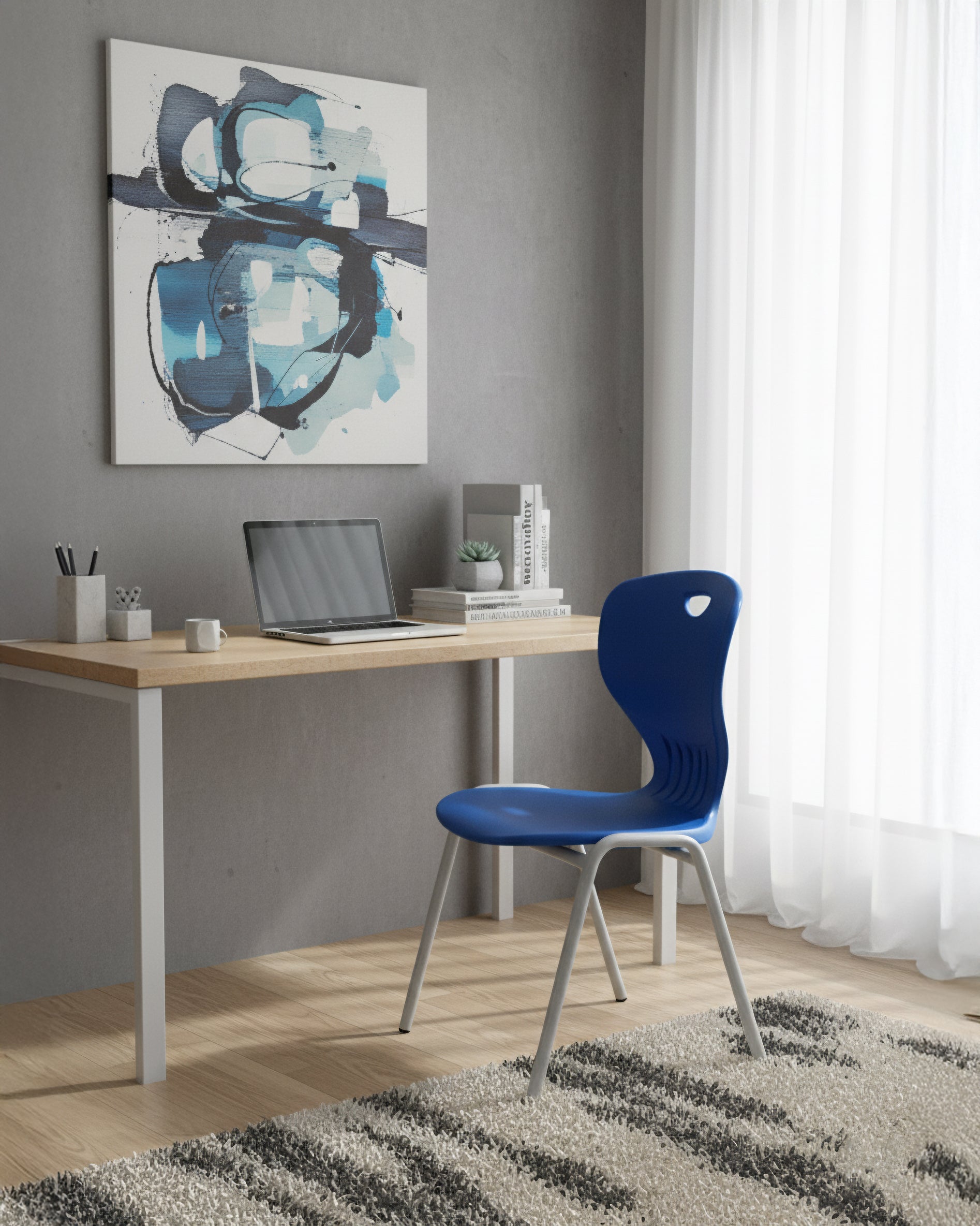 Crafted from premium molded plastic with a sturdy powder-coated steel frame, this chair is built to last while maintaining a modern aesthetic. Its generous dimensions make it suitable for home offices, study rooms, and training spaces. The contoured backrest with an integrated hand grip adds portability, and its easy-to-clean surface ensures hassle-free maintenance.