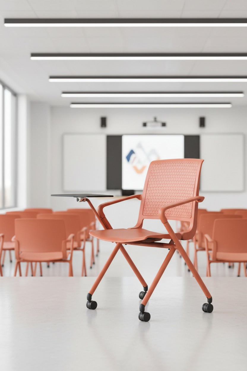 Sky is a multi-functional training chair designed to adapt to various office environments such as meeting rooms, training spaces, and collaborative zones. Its flexible configuration options include models with or without writing tablets, fixed legs, or caster wheels, allowing it to suit different spatial and functional needs. Available in multiple finishes and materials, it integrates easily into modern workspaces while supporting dynamic interaction and comfort.