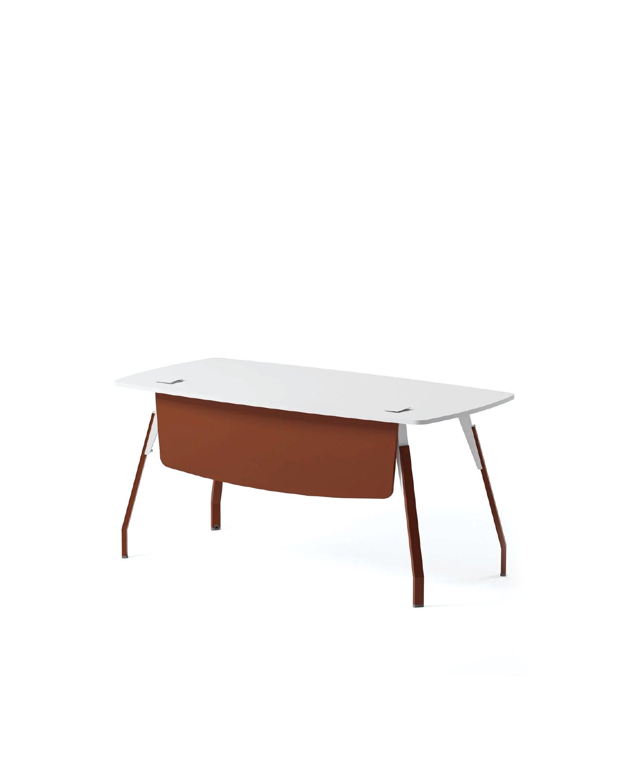 18mm thick laminated wood tabletop with recessed flip lids for cable access.